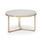 The Finn collection is a versatile range of furniture that crosses the boundaries between urban chic and classic modernity. The stool side table aims to elevate and enhance your interior design in a unique way. It features a splendid beige upholstered top and a golden frame. This exquisite and practical round stool side table can boast a modern feel and elegance to any living space. It is the ideal place for stylish decorative items, and for your favorite coffee mug.